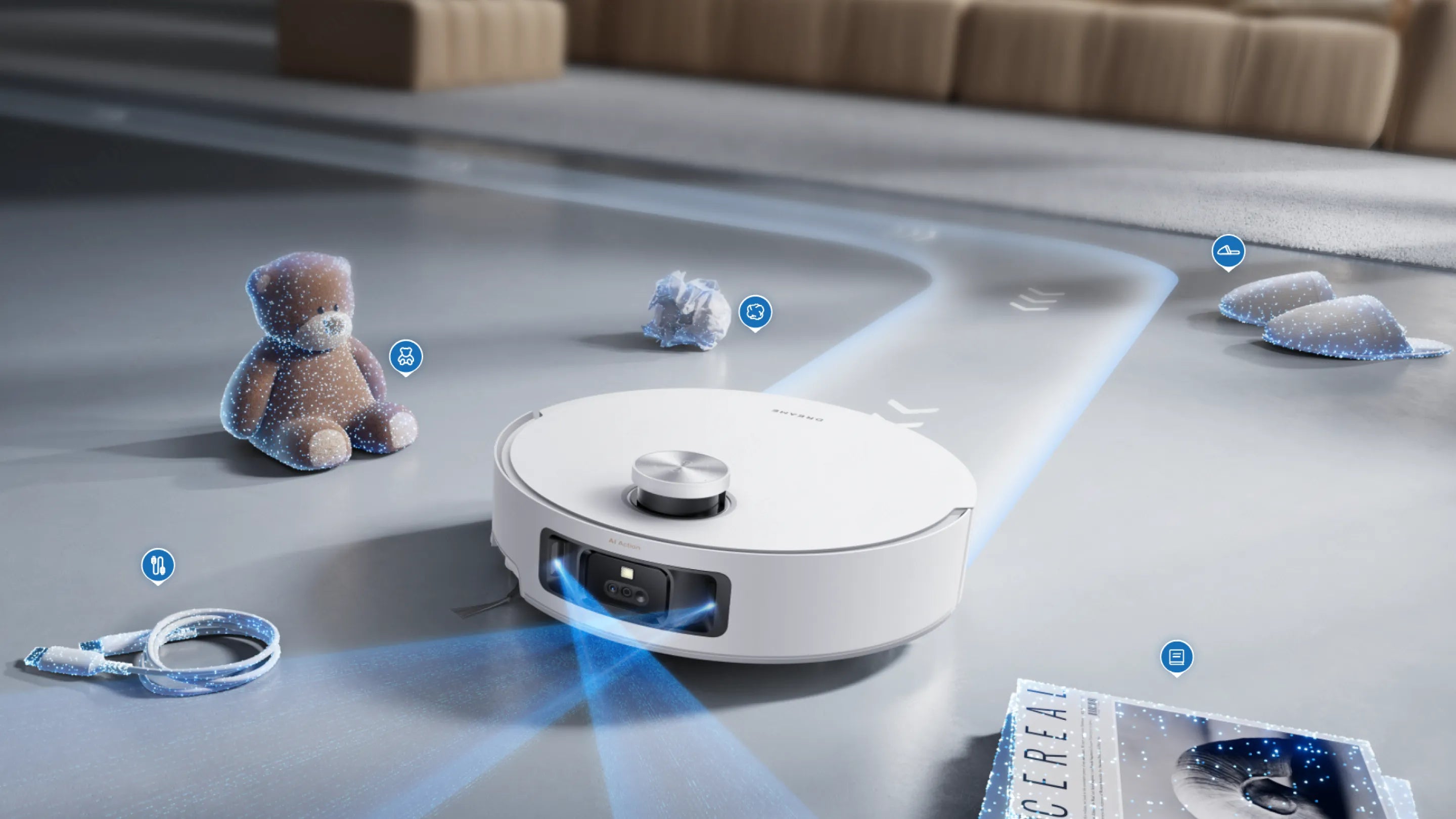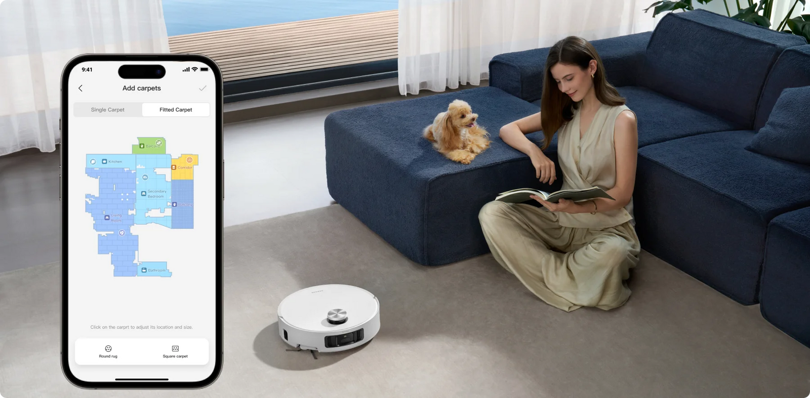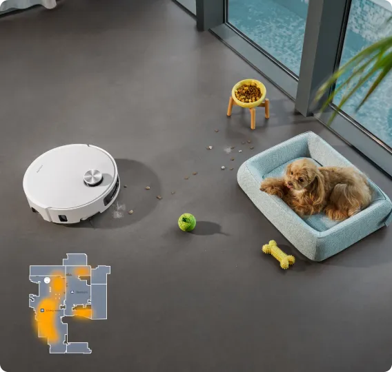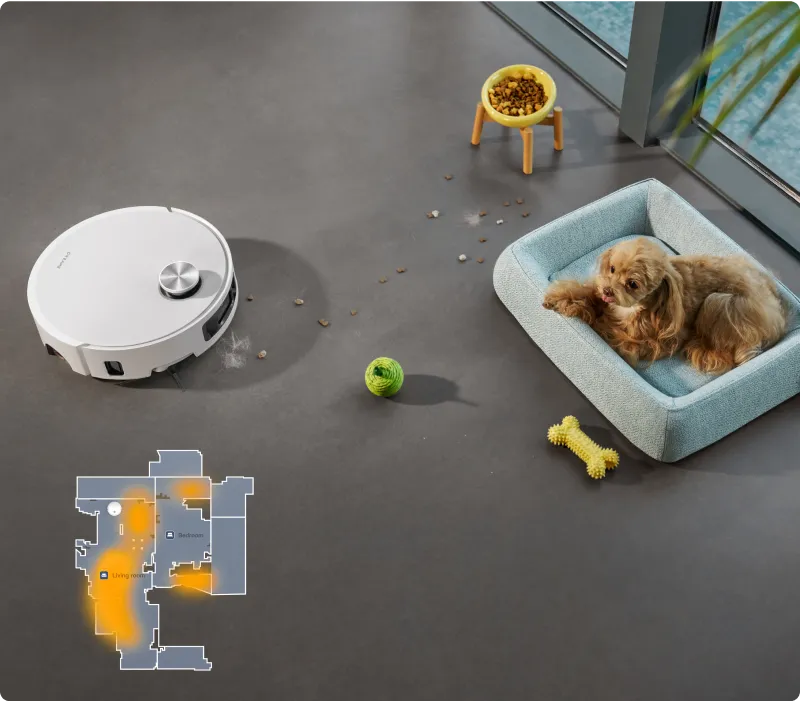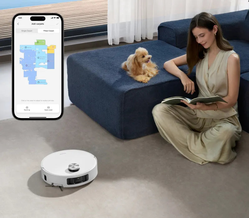 *Intensive carpet cleaning: Available in the cleaning app. After setting up, the robot vacuum will properly slow the speed and clean the carpet twice.