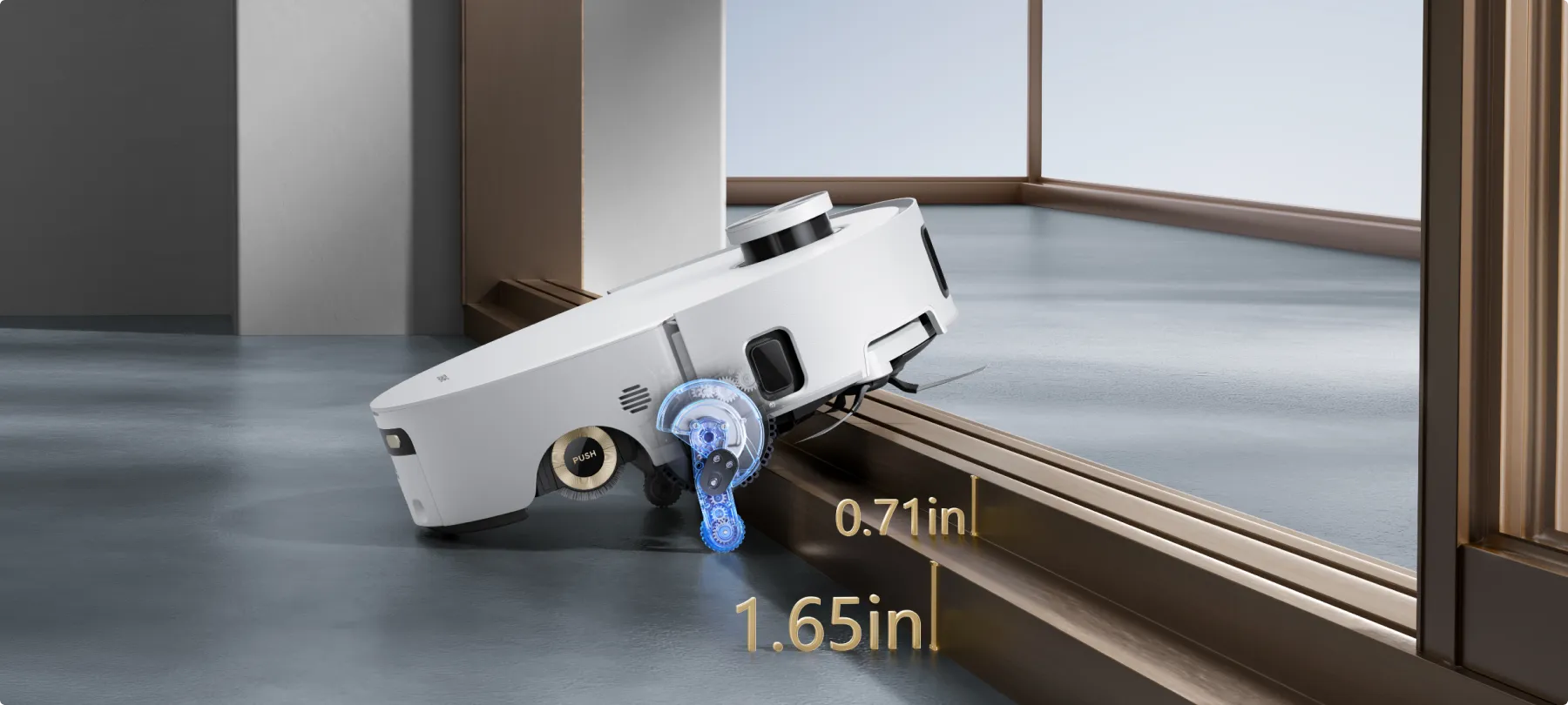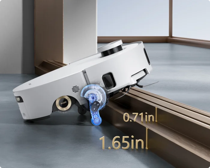 *0.55in: The robot vacuum's height difference is 14mm before and after mop lifting.