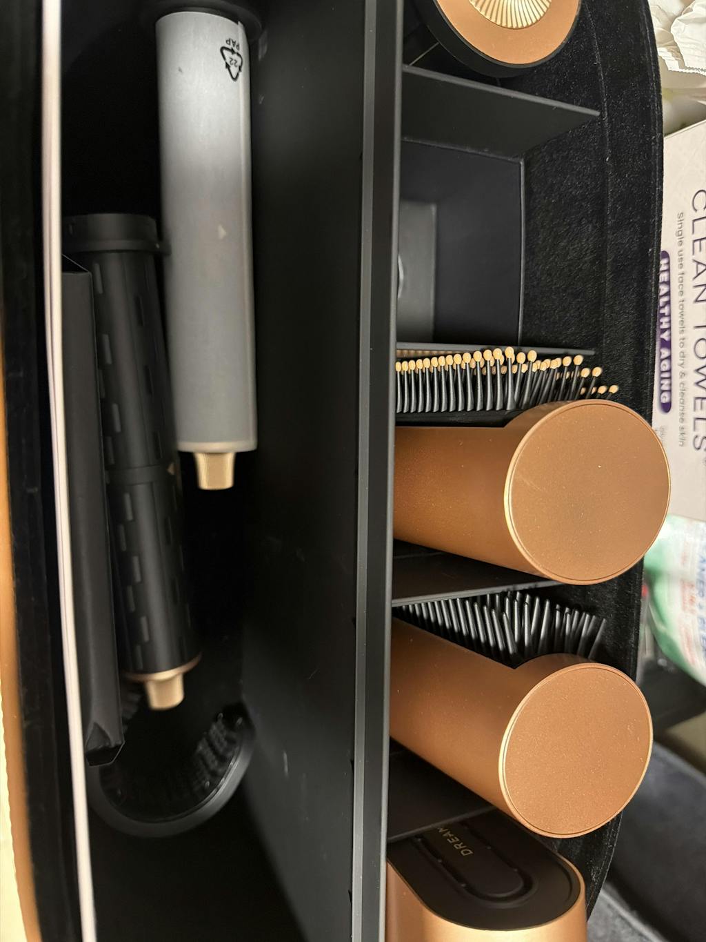 The package includes the Airstyle Pro main unit, 7 magnetic styling attachments, a storage case, a cleaning brush and a user manual.