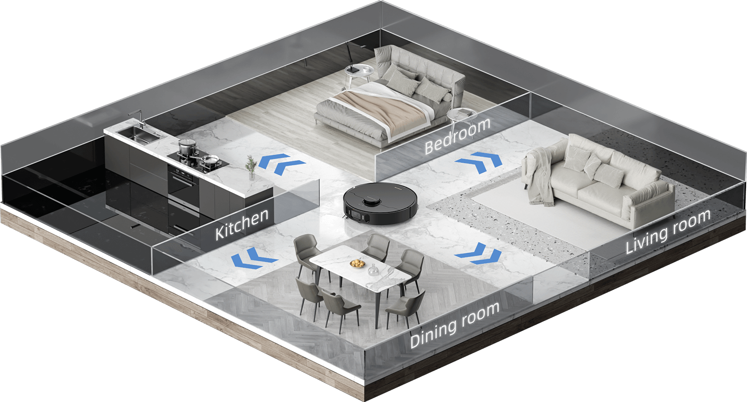 X30 Ultra tailors its cleaning approach to each room, considering layout, floor type, and furniture placement, for a personalized and effective cleaning experience.