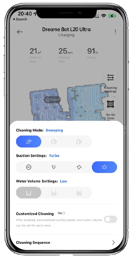 6. Mop removal: The mop removal function must be set in the Dreamehome app. It is off by default. Users will need to turn it on before using.