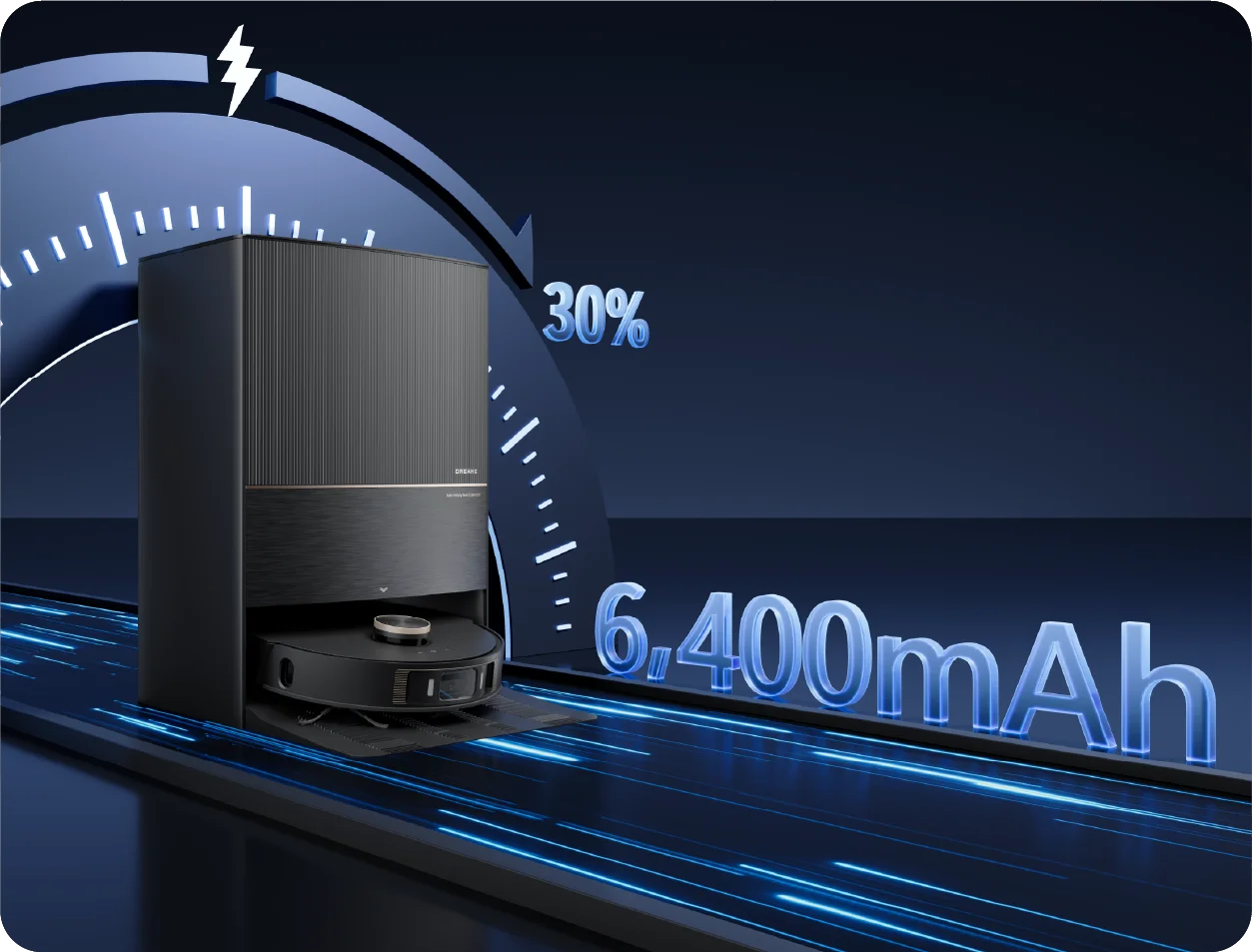 9. 30% faster charging: Compared to previous Dreame robot models.