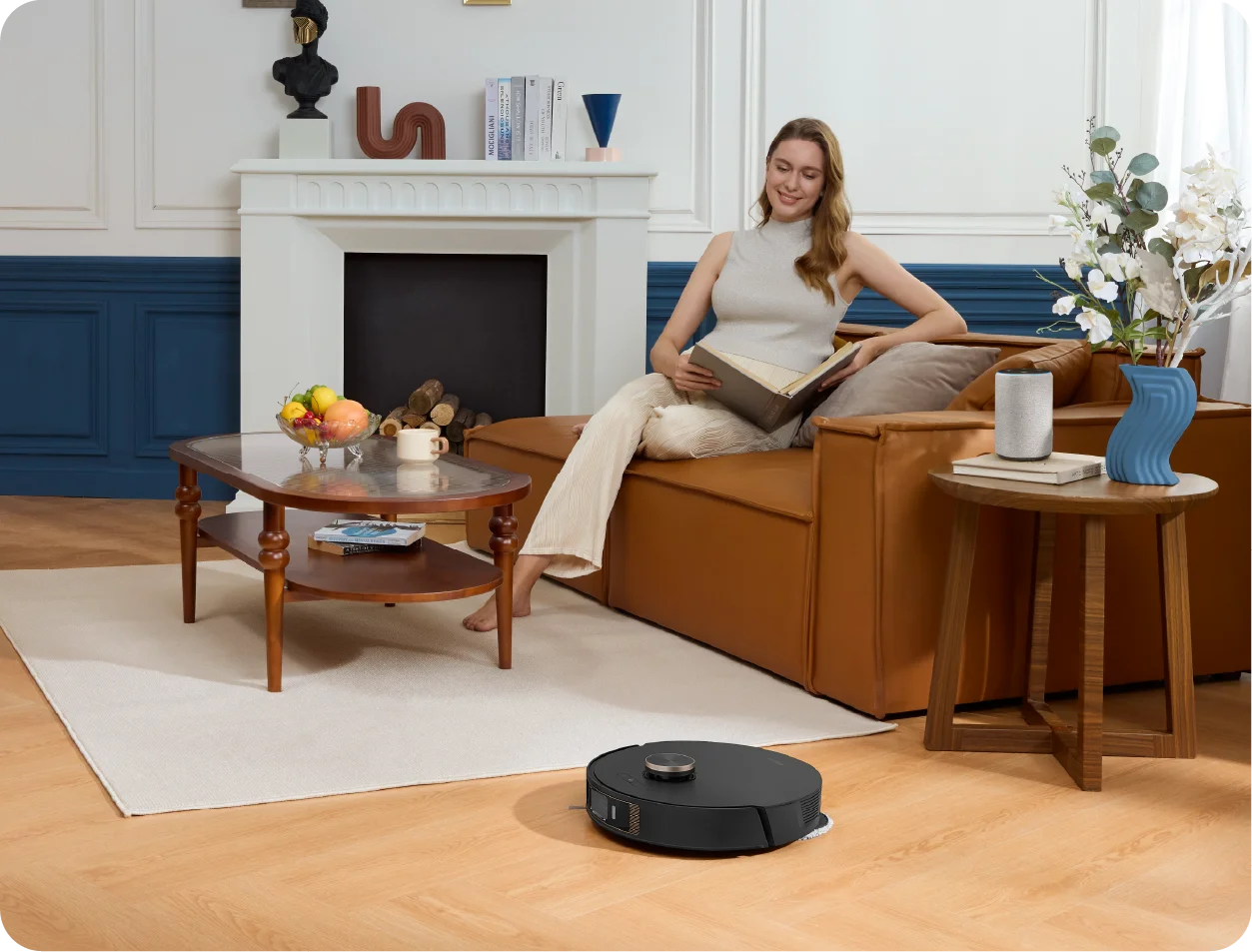 Dreame L20 Ultra Robot Vacuum integrates seamlessly with voice control in a cozy living room.