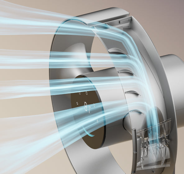 feels gentle and natural. Unlike harsh, turbulent gusts from conventional fans, it avoids abrupt air